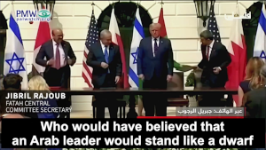 Fatah Central Committee Secretary Jibril Rajoub: “At this circus (i.e., signing of peace treaties at the White House), I think the swamps have dried up and these worms (i.e., UAE and Bahrain leaders) have become exposed to the sun. Who would have believed that an Arab leader would stand like a dwarf facing [Israeli Prime Minister] Netanyahu and not mention Jerusalem? … I think that even their speeches were written for them at the White House, and certainly in Tel Aviv of course…This is a ridiculous, stupid, and cheap comedy… What happened is [the result of] dictates from the current fascist administration, and this racist whose name is Netanyahu who is a distorted copy of Mussolini, and of everything that happened in the 1930s and 1940s in Europe.”