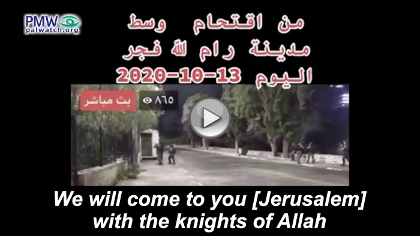 Text accompanying the footage of Israeli soldiers used in the video with the song posted by Fatah: “Invasion of the center of Ramallah today at dawn, 13/10/2020”