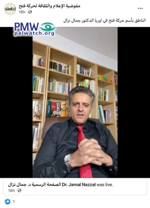 Posted text: “Fatah Movement Spokesman in Europe Dr. Jamal Nazzal”