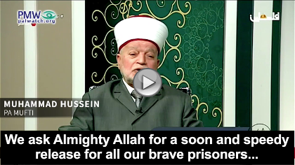 That these and other killers of Israelis are “heroes” is a message that is repeated by the highest religious authority in the PA: The Grand Mufti. He recently explained to PA TV viewers that all the Palestinian terrorists in Israeli prisons are “heroic” and admired by the Palestinian people: