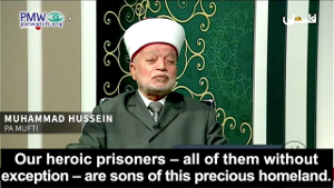 PA Mufti Muhammad Hussein: “We ask Almighty Allah for a soon and speedy release for all our brave prisoners... Our heroic prisoners – all of them without exception – are sons of this precious homeland. The entire Palestinian people and every free person in this world view them with admiration and honor.”