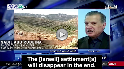 “The [Israeli] settlement[s] will disappear in the end. There will be no peace as long as there is one settlement on the Palestinian lands. Just as the settlements were removed from Gaza, they will be removed from the West Bank. Either a peace that is based on an independent, fully sovereign [Palestinian] state with East Jerusalem as its capital and without settlers or settlements, or else there will be no security, no stability, and no peace.”
