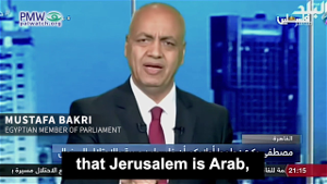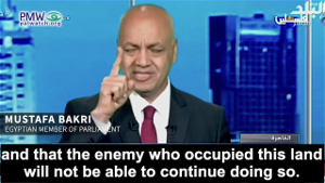 Although Israel signed a peace treaty with Egypt decades ago, one Egyptian member of Parliament rejects outright Israel's right to exist. Talking to viewers during a news broadcast on official PA TV (where he also hosts his own program), Mustafa Bakri demonized Israel, assuring viewers that Israel will be destroyed, or in his words – that “the Zionist entity will come to an end.” These ideologies he recommended that viewers teach their children: