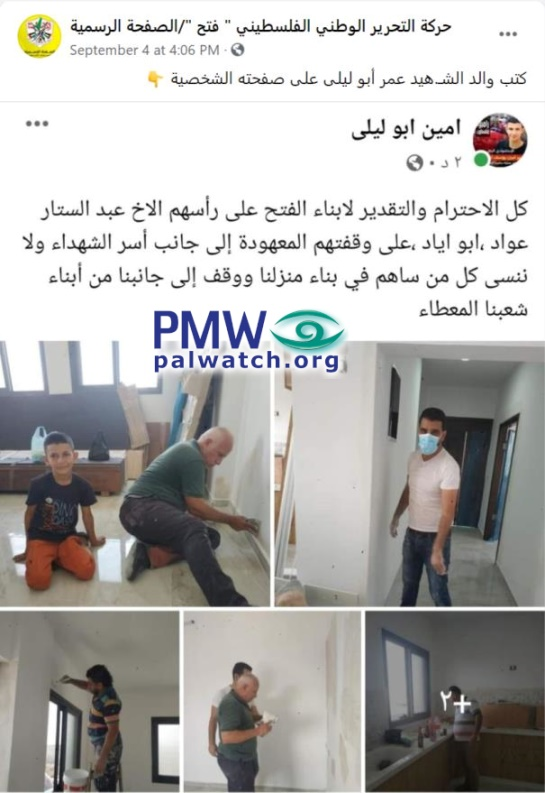 Murderer Omar Abu Laila’s father has repeatedly thanked Fatah during the construction of the new house: