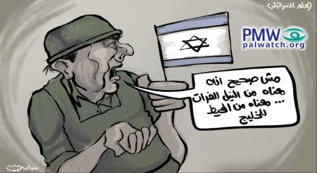 Palestinian Media Watch has reported for years on the PA claim that the two blue stripes on the Israeli flag represent the Nile and Euphrates rivers and constitute “proof” of the Israeli/Jewish goal to rule “from the Nile to the Euphrates.”