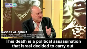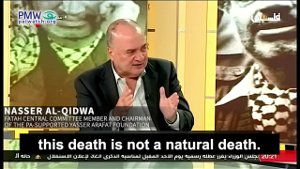 Fatah Central Committee member and Chairman of the PA-supported Yasser Arafat Foundation Nasser Al-Qidwa:“Israel is the one that poisoned Yasser Arafat and that is the cause of his death… From the first moment, we as an organization and as the Palestinian leadership have said this death is not a natural death. This death is a political assassination that Israel decided to carry out. Afterwards we learned that the method of the political assassination was poison, and specifically polonium-210.”