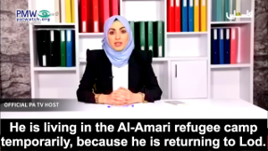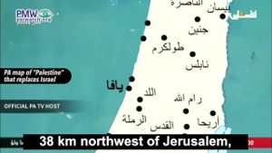 Official PA TV children’s host Walaa Al-Battat: “Lod (i.e., an Israeli city) is one of Palestine’s ancient cities - 38 km northwest of Jerusalem, 16 km southeast of Jaffa.”