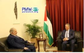 This article includes a photograph of the meeting, at the office of PLO Ambassador to Lebanon Ashraf Dabbour. on the wall is a decorative artwork in the shape of the PA map of “Palestine” that presents all of Israel (together with the PA areas) as “Palestine”.