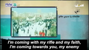 I’m Coming Towards You, My Enemy explicitly calls for murder and promises Israel – “my enemy” - to attack with rifles, cleavers and knives: