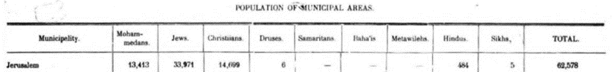 - The 1922 British census shows that Jews have been the outright majority (more than Muslims and Christians combined) in Jerusalem for at least 100 years. According to the census, 33,971of Jerusalem’s 62,578 residents were Jews: