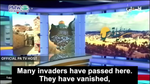 The message that Israel “will come to an end” as happened to past “invaders” has been disseminated for years by the PA. For example, Palestinian Media Watch reported that the following PA music video, portraying Israel as a foreign invader like the Romans, Christians, and British destined to be expelled, has been broadcast hundreds of times on official PA TV stations, from 2012 – 2020: