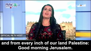 Official PA TV host: “From Safed, Haifa, Acre, and Jaffa (i.e., Israeli cities), and from every inch of our land Palestine - Good morning Jerusalem! A morning of splendor and glory for the capital of our hearts and our state… Many invaders have passed here. They have vanished, and Jerusalem has remained Palestinian, Islamic, and Christian. The occupation is nearing its end. And tomorrow, which is full of hope and freedom, is ours.”