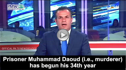 Official PA TV newsreader: “Prisoner Muhammad Daoud (i.e., murderer) has begun his 34th year in the occupation’s prisons…”