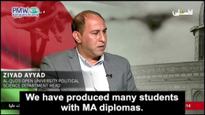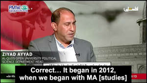 Al-Quds Open University Political Science Department Head Ziyad Ayyad: “Correct… It began in 2012, when we began with MA [studies] through brother Dr. Marwan Barghouti, who initiated the MA [program] of Israeli Studies in the prisons. This program has been a great success. We have produced many students with MA diplomas.”