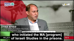 Al-Quds Open University Political Science Department Head Ziyad Ayyad: “Correct… It began in 2012, when we began with MA [studies] through brother Dr. Marwan Barghouti, who initiated the MA [program] of Israeli Studies in the prisons. This program has been a great success. We have produced many students with MA diplomas.”[Official PA TV, Giants of Endurance, Oct. 8, 2020]