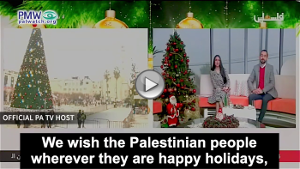 Official PA TV host: “We wish the Palestinian people wherever they are happy holidays, health, and all the best. May we and you turn the coming years into a message of love, hope, and joy. A message of resolve and patience that characterized the first Palestinian, Jesus, peace be upon him.”