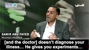 A released prisoner added to the medical libel by claiming that Israel never treats sick prisoners but uses them for testing “experimental” drugs, and that prisoners die due to Israel's “calculated neglect”: