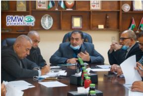 The article includes a picture from the Qalqilya Municipality workshop; on a shelf in the background is a decoration featuring the PA map of “Palestine” that presents all of Israel together with the PA areas as “Palestine.”