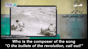 The Palestinian Authority is using its current TV quiz series about Palestinian cultural songs to stress that violence and confrontation remain lofty PA ideals. Palestinian Media Watch has exposed that most of the songs that “fascinate… with values and meanings” chosen by the PA for the quiz until now present PA’s “cultural and… national identity” as being about rifles, violence, murderers, and Martyrdom:
