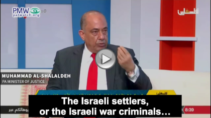 PA Minister of Justice Muhammad Al-Shalaldeh: “The International [Criminal] Court (ICC) has full authority for judging and extradition. The Israeli settlers, or the Israeli war criminals… There will be a list of names that may begin- We can investigate the [Israeli] prime minister… The ICC will act according to a legal plan, according to the legal measures for extradition and prosecution, and there were experiences with this after World War II: the court in Nuremberg and in Tokyo for prosecuting and punishing the Nazis.”