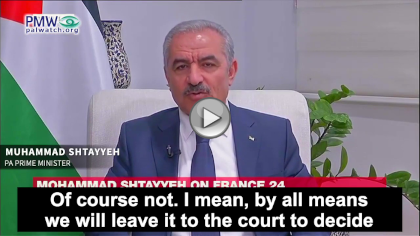 PA PM Muhammad Shtayyeh also welcomed the ICC’s decision, and its “ruling” that “Palestine is a state.” Shtayyeh furthermore exploited the opportunity to whitewash all Palestinian terror against Israel as mere “defense.” Asked if he would welcome an ICC probe into the crimes of Palestinian groups such as Hamas, Shtayyeh said: “Of course not,” claiming that “Palestinians have never been on the attack,” but “always on the defense”: