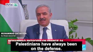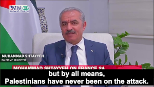 PA PM Shtayyeh whitewashes all Palestinian terror, opposes ICC trying Hamas for its crimes: “Palestinians were never on the attack, always on the defense”