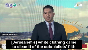 Official PA TV host: “Despite all the evil and terror that the haters are spreading, [Jerusalem’s] white clothing came to clean it of the colonialists’ filth and to spread even a bit of joy in the hearts of its people.”