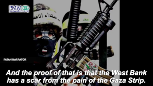 In a third video, posted by Fatah’s Commission of Information and Culture, Abbas’ movement shows old footage of youth and adults marching with rifles and a man firing an RPG, while text on the screen connects the images to Fatah “leading the national battle of liberation”: