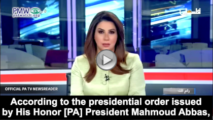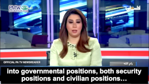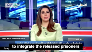 Official PA TV newsreader: “According to the presidential order issued by His Honor [PA] President Mahmoud Abbas, the [PLO] Commission of Prisoners’ Affairs has begun the initial steps to integrate the released prisoners into governmental positions, both security positions and civilian positions…”
