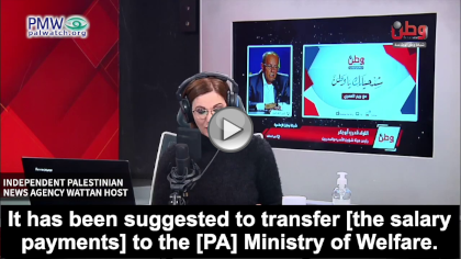 Official PA TV reporter: “Throughout the path of the struggle against the occupation, the leadership has shown great interest in the wounded and the families of the Martyrs. This became clear recently in His Honor [PA] President Mahmoud Abbas’ defiance of Israel’s attempts to deduct the salaries of the Martyrs and wounded from the tax money as collective punishment to starve their families” …
