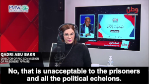 Director of PLO Commission of Prisoners’ Affairs Qadri Abu Bakr: “We’ll talk with the banks and take a position against closing any existing account… Starting from Jan. 1, [2021], we paid [salaries] two months in advance, so that there would be time to find a mechanism to pay the prisoners and released prisoners. The prisoners also raised the topic of being absorbed [into the PA institutions]… There are forms. Not everyone filled them out, but we want to start with the forms that are ready. The prime minister promised that in a few days there will be a decision on the matter... It was emphasized that the prisoners’ cause – both those inside prison and those outside – is a sacred cause that must not be harmed…