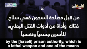The prisoners in the occupation’s prisons are being subjected to a policy of deliberate medical neglect (sic) by the [Israeli] prison authority, which is a lethal weapon and one of the means to slowly physically and psychologically murdering the prisoners