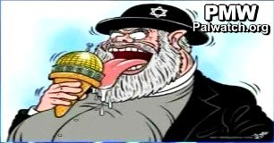 Demonic Jews threaten Dome of the Rock MosqueOfficial Palestinian Authority TV|Jul 4, 2010PA TV broadcast a cartoon from the Jordanian newspaper Al-Dustur, showing a demonic religious Jew eating the Dome of the Rock in the shape of an ice cream cone.