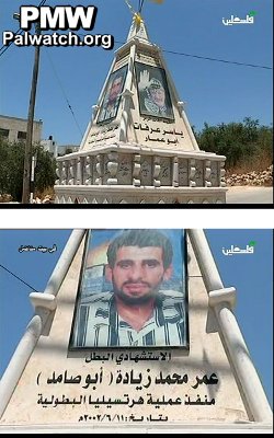 « Le istichhadi (martyr volontaire – expression de l’Autorité palestinienne pour honorer les terroristes suicidaires) héroïque Omar Mohammed Ziyada (Abou Samed) qui a mené l’opération héroïque à Herzliya le 11 juin 2002. »