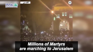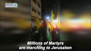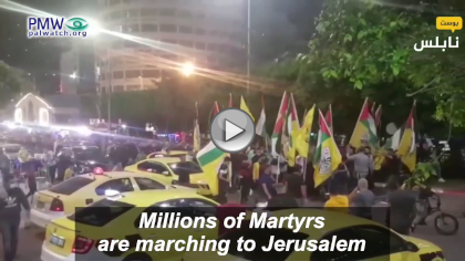 Fatah also posted a video of Fatah supporters encouraging death as “Martyrs” for Jerusalem, chanting: “Millions of Martyrs are marching to Jerusalem”