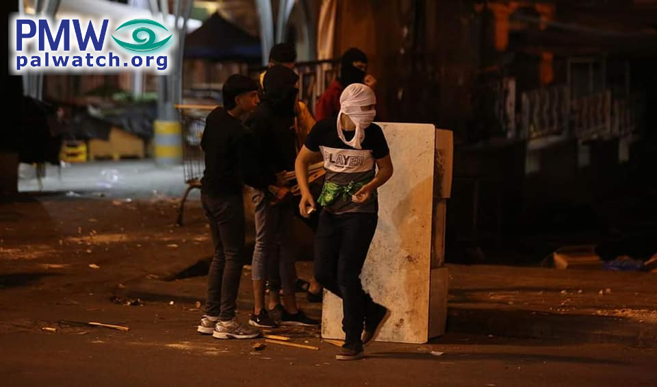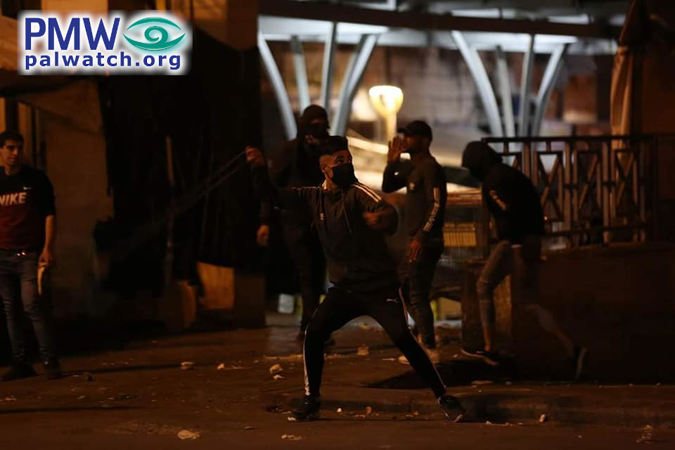 The images show masked Arab rioters throwing rocks at Israeli security forces.