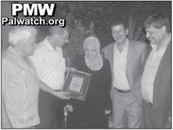 La mère de 4 terroristes condamnés à 18 peines de prison à perpétuité honorée par l`Autorité palestinienne