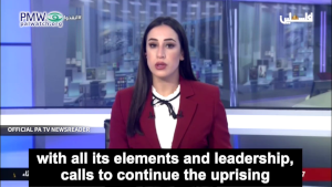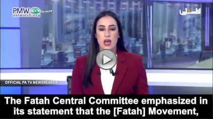 Official PA TV newsreader: “The Fatah Central Committee emphasized in its statement that the [Fatah] Movement, with all its elements and leadership, calls to continue the uprising and struggle in the confrontation against the occupation forces… The Fatah Central Committee called on everyone to raise the level of confrontation in the coming days and hours in the Palestinian lands, the points of friction, and the settlers’ roads…