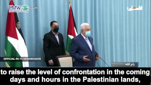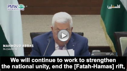 PA Chairman Mahmoud Abbas: “We will continue to work to strengthen the national unity, end the [Fatah-Hamas] rift, and continue the peaceful popular resistance (i.e., PA euphemism for violence and terror). For God’s sake, I ask of you, do peaceful popular resistance, for God’s sake. Where is it? Where is the peaceful popular resistance that must be done?”