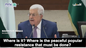 Already ten days ago Abbas urged the Palestinian public to “do peaceful popular resistance.” He repeated this 3 times during a short statement: