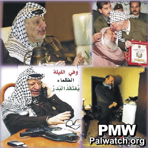 Zayzafuna youth mag publishes photos of Arafat with weapons and kissing Yassin, founder of Hamas