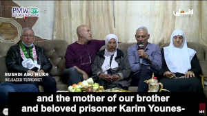 Released terrorist Rushdi Abu Mukh: “On behalf of my whole family and the mother of our brother and beloved prisoner Karim Younes- the two prisoners Karim and Maher Younes (i.e., terrorist cousins, murdered 1), and the mother of-“