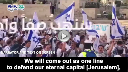 While PA, PLO, and Fatah bodies and officials attribute the march to “settlers”, the march is traditionally attended by tens of thousands of Israelis who are not residents in East Jerusalem, Judea or Samaria – in other words, Israelis who are not considered to be “settlers”. However, from the point of view of the Mufti and the Fatah leaders, all Jews living anywhere in Israel are “settlers”.