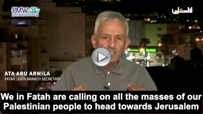 Significantly, while the march does not go on to the Temple Mount or approach the Al-Aqsa Mosque, which is located on the southwestern corner of the Mount, Fatah Jenin Branch Secretary Ata Abu Armila called on Palestinians to defend the Al-Aqsa Mosque and the Arabs in Jerusalem: