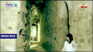 Official PA TV has broadcast a music video hundreds of times since 2012 that visualizes this ideology, portraying the Palestinians as a woman dressed in white who experiences different foreign rulers. Israel is presented as the last “foreign ruler” that will be defeated by a Muslim ruler: