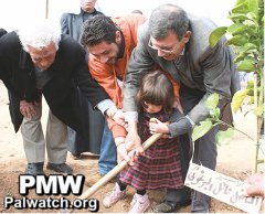 Present at the tree-planting ceremony were the Minister of Prisoners’ Affairs, Issa Karake; Jericho and [Jordan] Valley District Governor Majed Al-Fetyani; and member of the Fatah Central Committee, Tawfiq Al-Tirawi…
