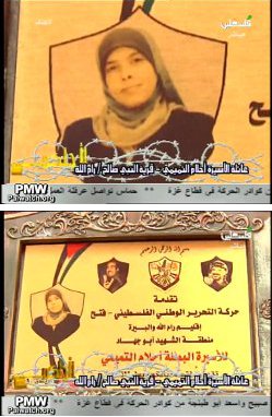 Poster on Palestinian Authority TV honoring female suicide bomber also honors Abu Jihad