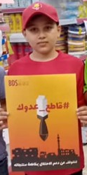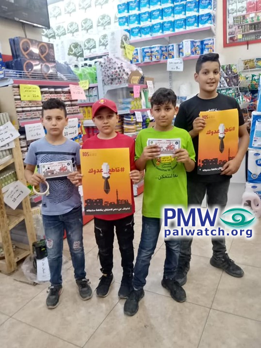 Kids taught to campaign in stores with posters of falling bombs: “Boycott the enemy”