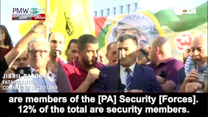Accordingly, Fatah Central Committee Secretary Jibril Rajoub bragged at a recent Fatah rally that 12% of the imprisoned Palestinian terrorists are from the PA Security Forces: