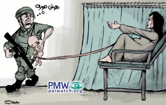 Demonization: Graphic Palestinian Authority cartoon shows Israeli soldier pulling a newborn infant from its mother
